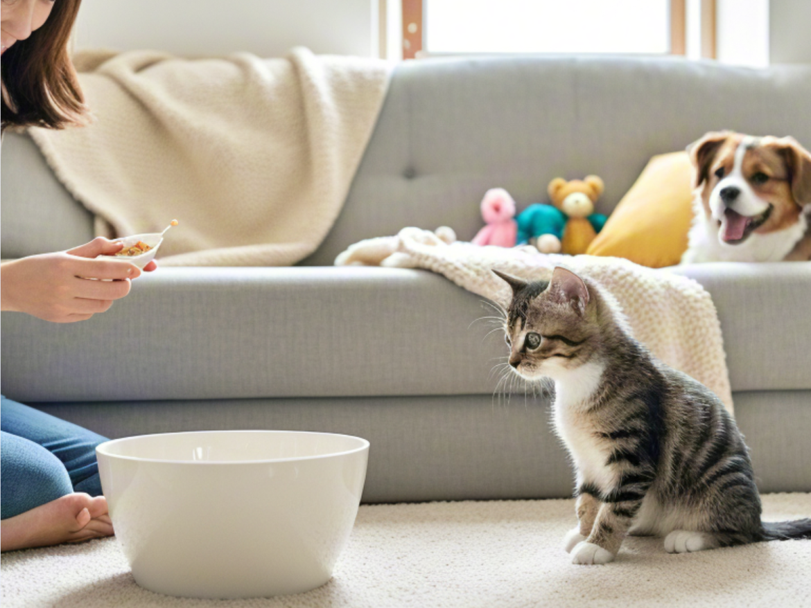 清洁猫碗,确保水源和食物充足